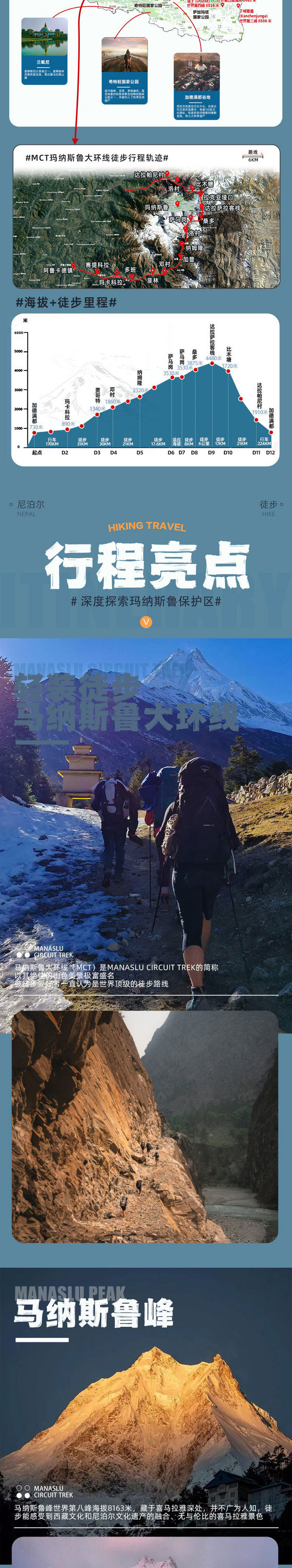 马纳斯鲁峰地处尼泊尔,海拔8163米,是世界第八高峰。马纳斯鲁大环线(MCT)是Manaslu Circuit Trek的简称,以其绝佳的山色美景极富盛名被徒步爱好者一直认为是世界顶级的徒步路线。