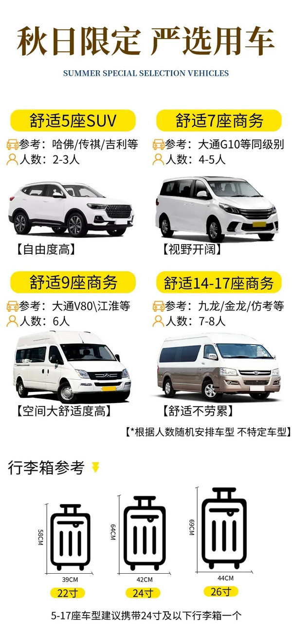 2.接机请提前最少2天告知航班号及时间、人数,未告知者视为自动放弃,感谢您的理解。