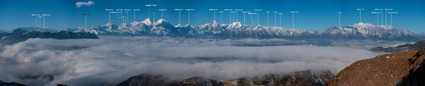 ▼请欣赏:牛背山拍摄贡嘎群山的标注。