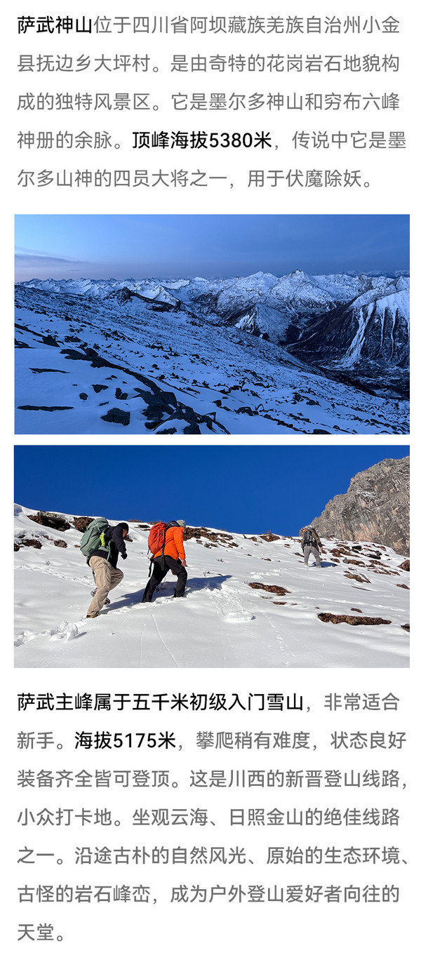 全年路线,萨武神山主峰每日发团,1人成行。如不受政策和自然灾害影响。