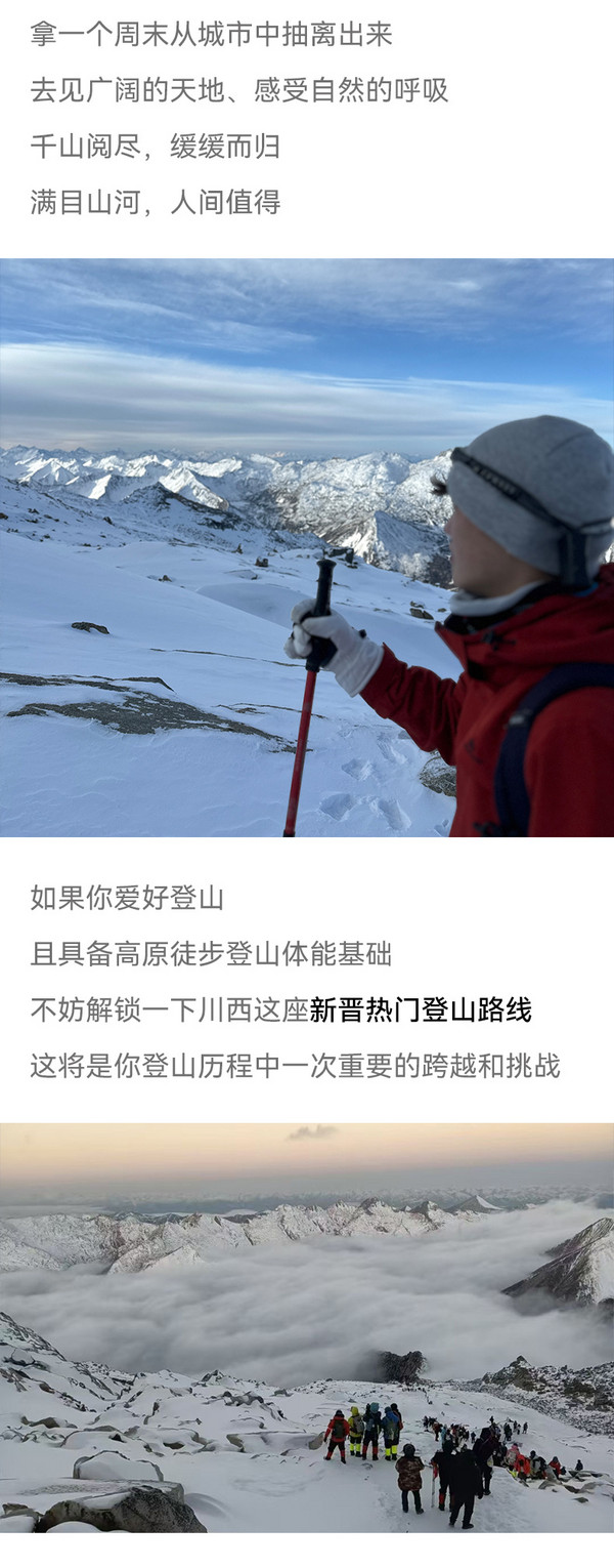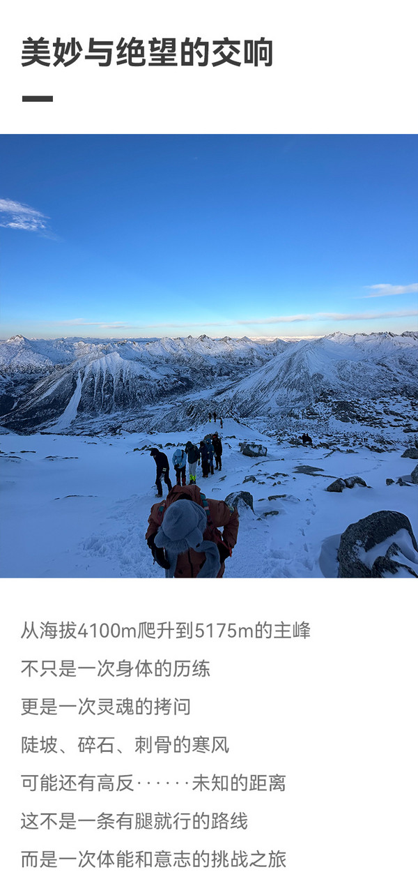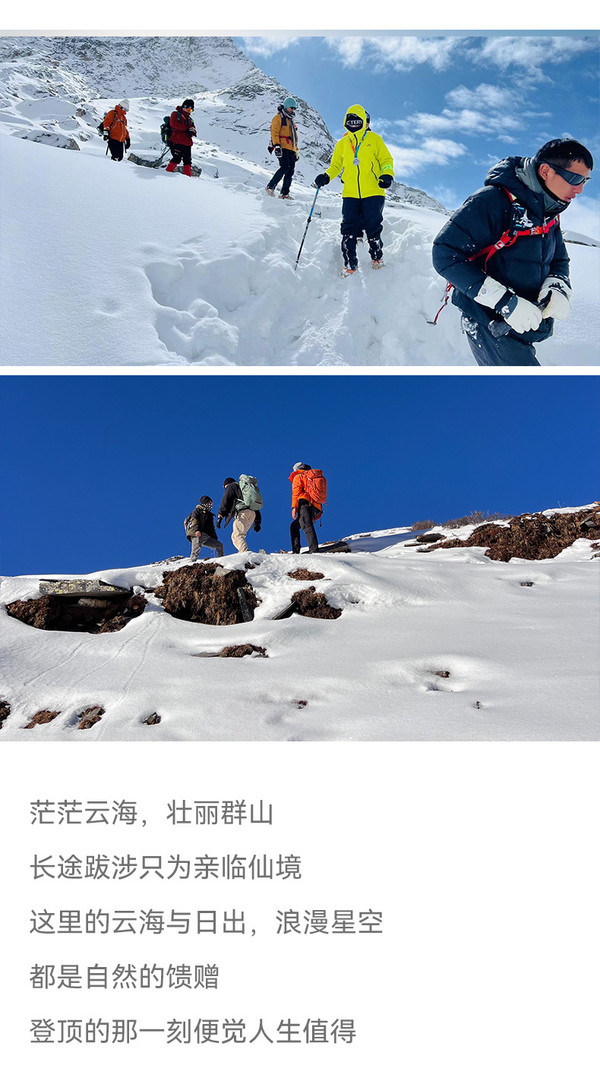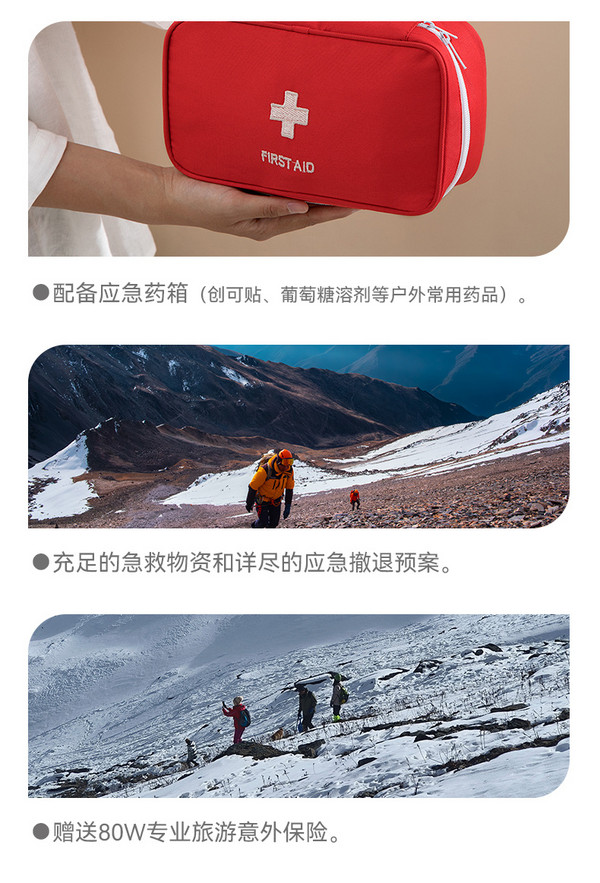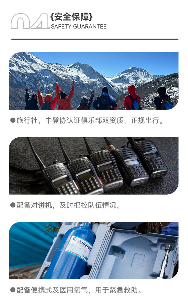 4.专业登山向导带队,10人以上配专业高山领队全程跟队。