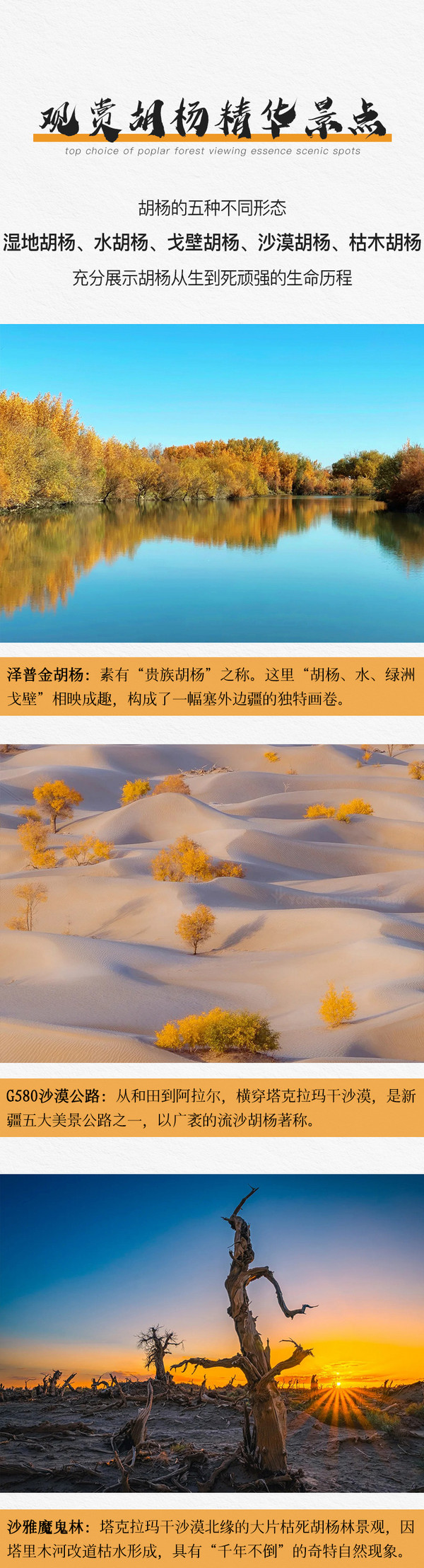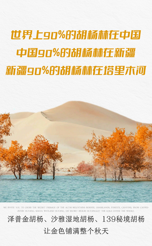 泽普金湖杨60元、托木尔大峡谷96元、原始胡杨林生态景区50元、印鉴西域实景演出160元