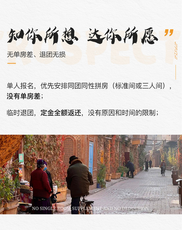 关于单房差的说明:单人报名,我们会安排同性拼房(标准间或者三人间),如不愿与他人合住者,以及携带异性儿童者,请补单房差(独立定制团队需补单房差);