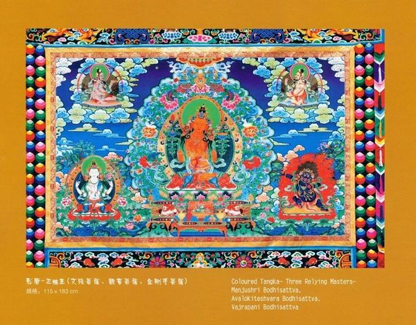 热颂贡布,藏语里的意思是“三怙主”,意为观音、文殊、金刚手三大菩萨,这三位菩萨也合称为“三族姓尊”,是藏族密宗的起源,也相传宗喀巴大师正是这三座菩萨的化身。