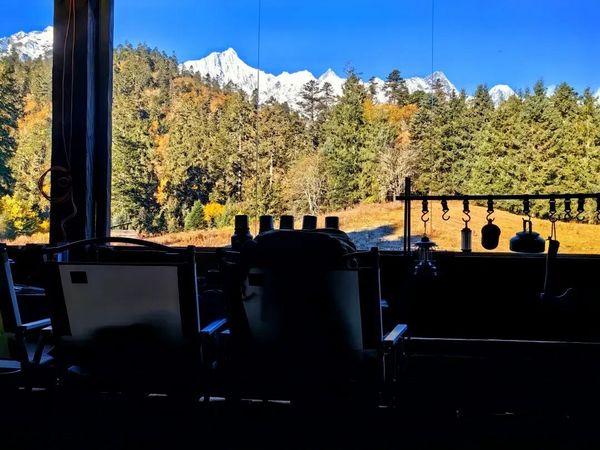 坐在木屋的窗前全然放松,看着远处从丛林中探出“头顶”的卡瓦格博,或是饮茶或是喝咖啡,都是难得的宁静美好时光。