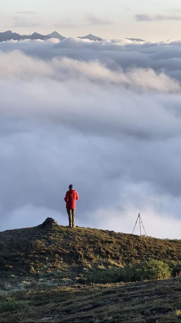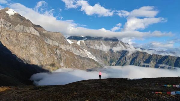▲ 崩格顶营地身后的白马雪山云海及卡瓦格博下方谷地的云海,傍晚时分还能欣赏到白马的日落金山。