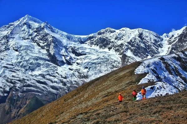早餐后从崩格顶营地徒步出发到达雨崩虫草线,沿着虫草线徒步返回荣中村。徒步约14公里,全程将切换不同的视角朝觐神山。