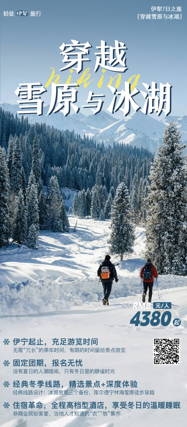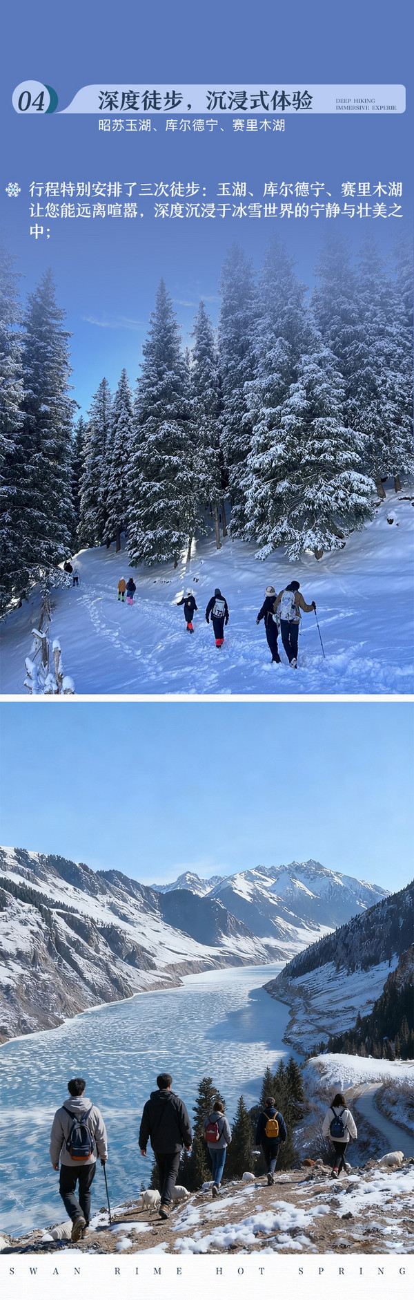 亮点:泡湖奇观、徒步穿越赛里木湖,终极耐力考验,全景式体验赛里木湖冬季的壮阔与严酷。