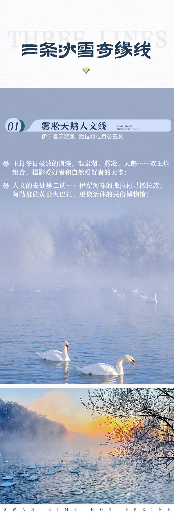 1、天鹅泉清晨易出现雾凇,景色最佳,但气温极低,请务必做好保暖措施,尤其是手脚和面部。