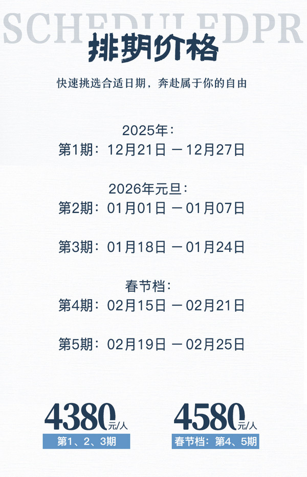 关于合同和余款的说明:缴纳订金后,确认报名!出发前3-4天会有客服和您联系,并建立微信活动群,通知相关事宜,余款在集合当日付清并签署旅行合同。